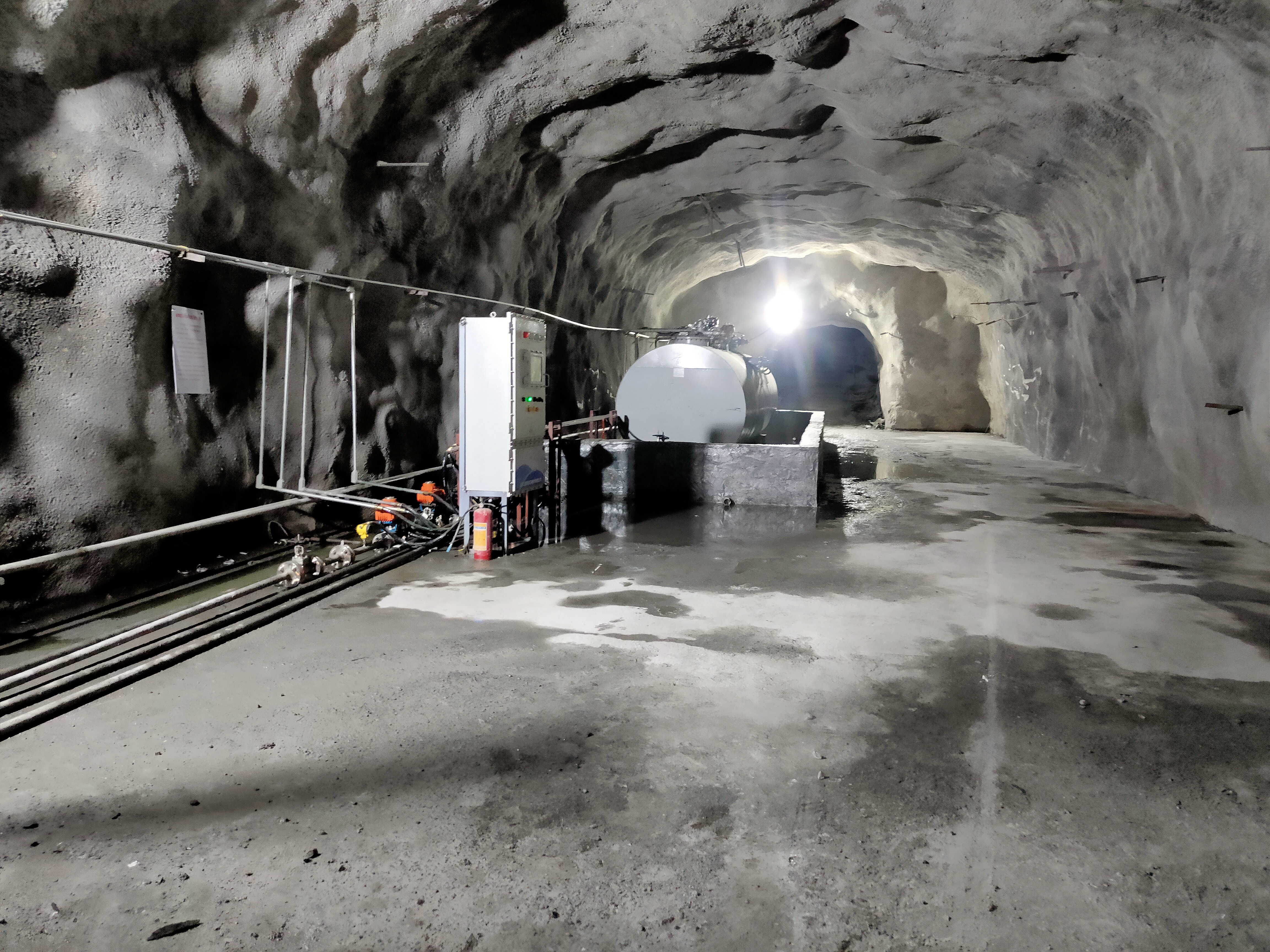 凡口鉛鋅礦井下680米智能供油系統(tǒng) 目前正有序施工中, 預(yù)計(jì)9月底完工并投入使用。該項(xiàng)目為全國首創(chuàng), 由韶關(guān)企業(yè)進(jìn)行技術(shù)攻堅(jiān) 并申請多項(xiàng)國家專利, 擬申報(bào)吉尼斯世界紀(jì)錄 “全球最深的智能供油系統(tǒng)”。 凡口鉛鋅礦井下智能供油系統(tǒng) 需在地面設(shè)置橇裝加油裝置, 并分別在地下 330米、480米和680米處 建設(shè)智能化供油系統(tǒng), 通過鉆孔鋪設(shè)輸油管線, 將油品從地面輸送到井下。 地下330米智能加油點(diǎn), 目前已進(jìn)入收尾階段, 現(xiàn)場有兩根 從地面裝置接下來的輸油管, 用于工程車加油, 另一邊也有兩根輸油管輸送到 地下480米和680米的智能加油點(diǎn)。 別看油管很細(xì),鉆孔不大, 但施工難度并不小, 全長3千多米的輸油管, 垂直打孔偏差不能超過1米。 作為亞洲最大的 單體鉛鋅銀礦生產(chǎn)基地, 凡口鉛鋅礦 有井下工程車輛和設(shè)備100多臺(tái), 井下用油量大。 井下智能化供油系統(tǒng)啟用后, 不僅解決井下用油安全、環(huán)保風(fēng)險(xiǎn), 同時(shí)降低生產(chǎn)用油成本, 推進(jìn)凡口鉛鋅礦建設(shè)智能化礦山, 實(shí)現(xiàn)“無人開采”。 如果鉆孔偏差太大,就找不到鉆下來的孔,影響輸油管道的布設(shè),增大成本。3千多米有5千多個(gè)焊接點(diǎn),所有的焊接口都要達(dá)到高壓管道的焊接要求,這個(gè)項(xiàng)目是全國首創(chuàng),在全國所有礦山企業(yè)中,我們是首次使用通過輸油管道往井下輸油,并且實(shí)現(xiàn)智能控制的方案。 這個(gè)月底把地下330米加油點(diǎn)完工,開始加油,9月底把底下480米和680米開通使用。希望通過這個(gè)項(xiàng)目打造創(chuàng)新科技的韶關(guān)樣板,把先進(jìn)的經(jīng)驗(yàn)和技術(shù)推廣到全省、全國乃至全球。